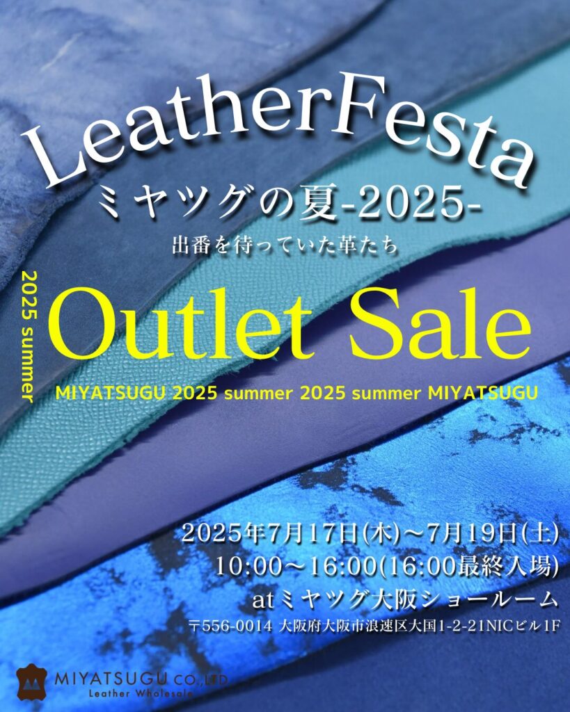 ミヤツグでは、2025年7月17日(木)~7月19日(土)の3日間、大阪ショールームにて販売イベント「Leather Festa -ミヤツグの夏 2025-」を開催いたします。