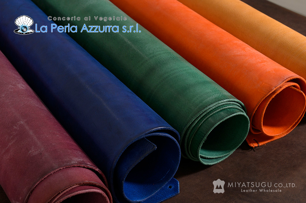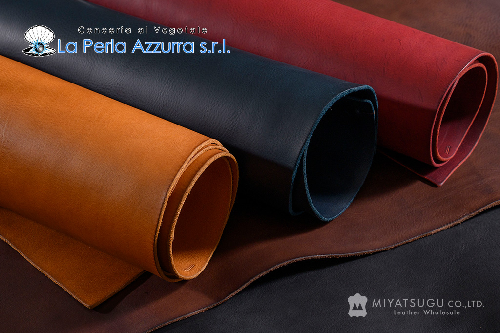 オイルをしっかりと含んだ、しっとりとした感触のLa Perla Azzurra社定番厚口ダブルショルダー。